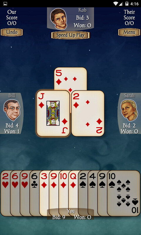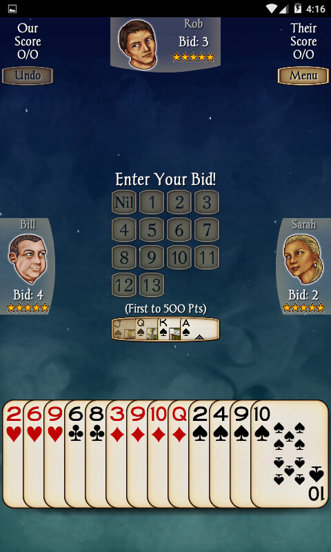 - Bag Management: Intelligently control your overtricks to avoid the 100-point bag penalty. Sometimes, you must deliberately lose a trick to avoid taking the 10th bag.