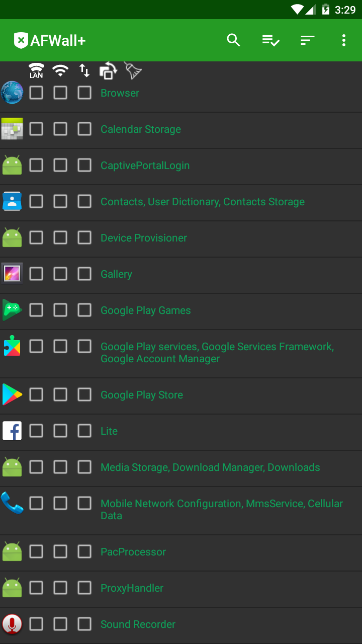 1. Granular Control: Allows you to selectively grant or deny Wi-Fi, Mobile data, and VPN (allow/deny only) access on a per-application basis. You can even control network access for system apps and services.