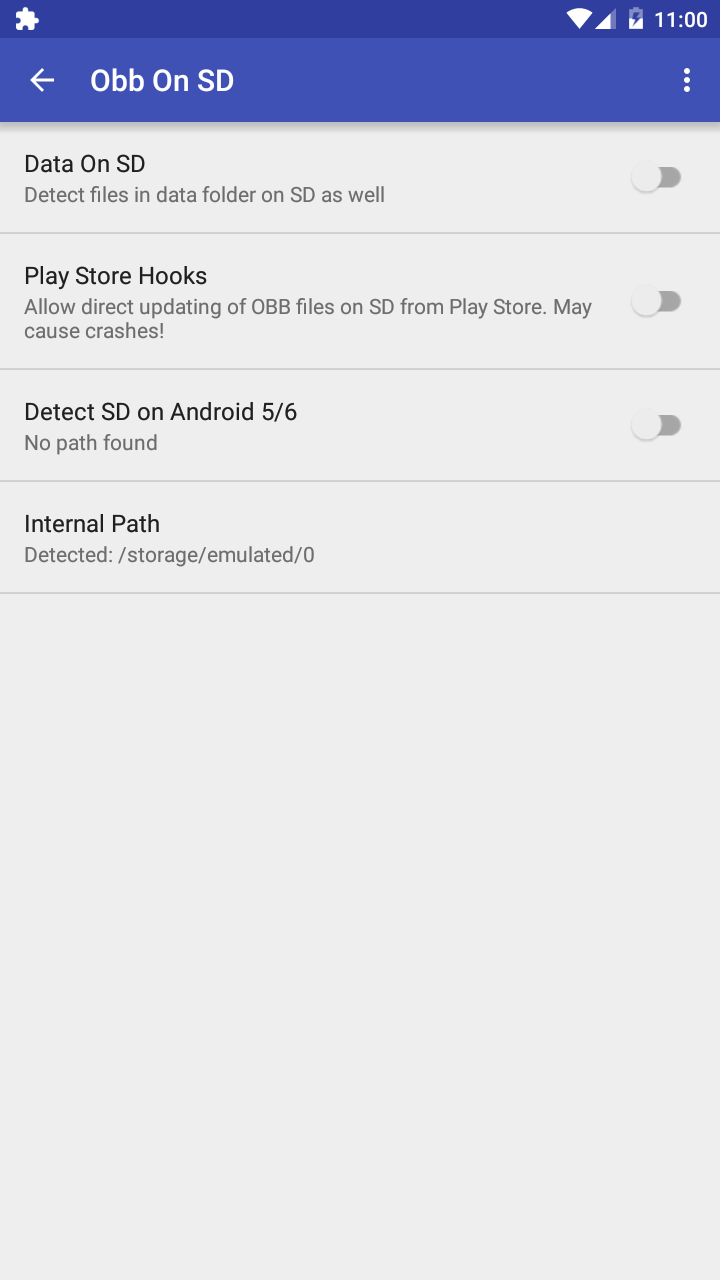 This Xposed module allows you to forcefully relocate and run an application's OBB (Opaque Binary Blob) data packages—which are typically stored in the internal storage's Android/obb/ directory—on an external SD card.