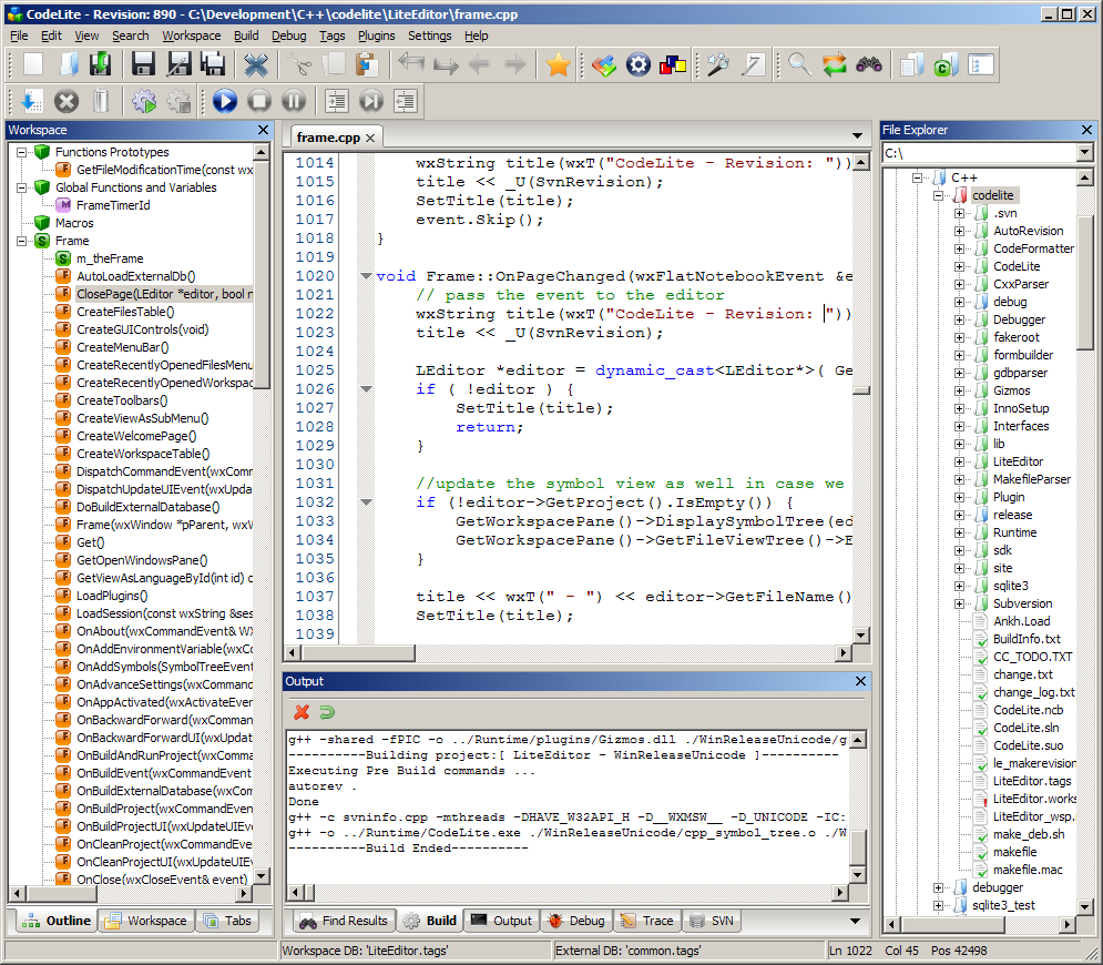 - This is CodeLite's core strength. It offers deeply integrated features like powerful code completion, syntax highlighting, refactoring (rename symbol, extract function, etc.), code navigation, and a Clang-based code analyzer that provides accurate hints and error detection.