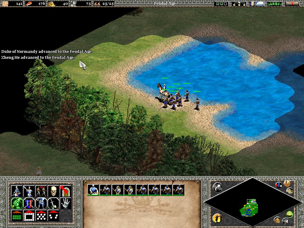 - Classic "4C" Gameplay: The core loop revolves around Collecting, Building, Conquering, and Upgrading. Players must manage villagers to gather resources (Food, Wood, Gold, Stone), develop their economy, construct towns and armies, research technologies, and ultimately defeat their opponents.