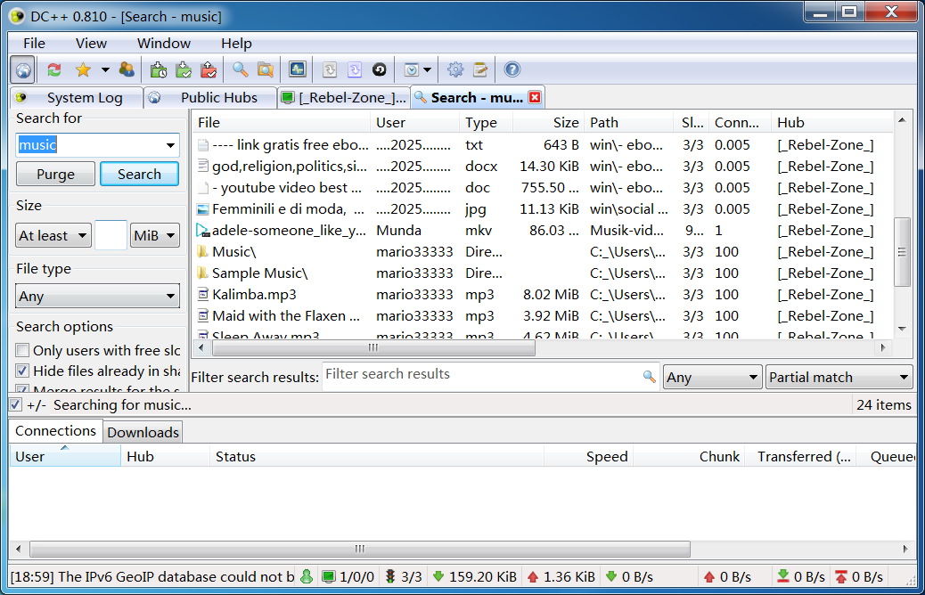 - TTH Verification: Uses TigerTree Hash (TTH) to guarantee the integrity and accuracy of file transfers and enables TTH-based searching.