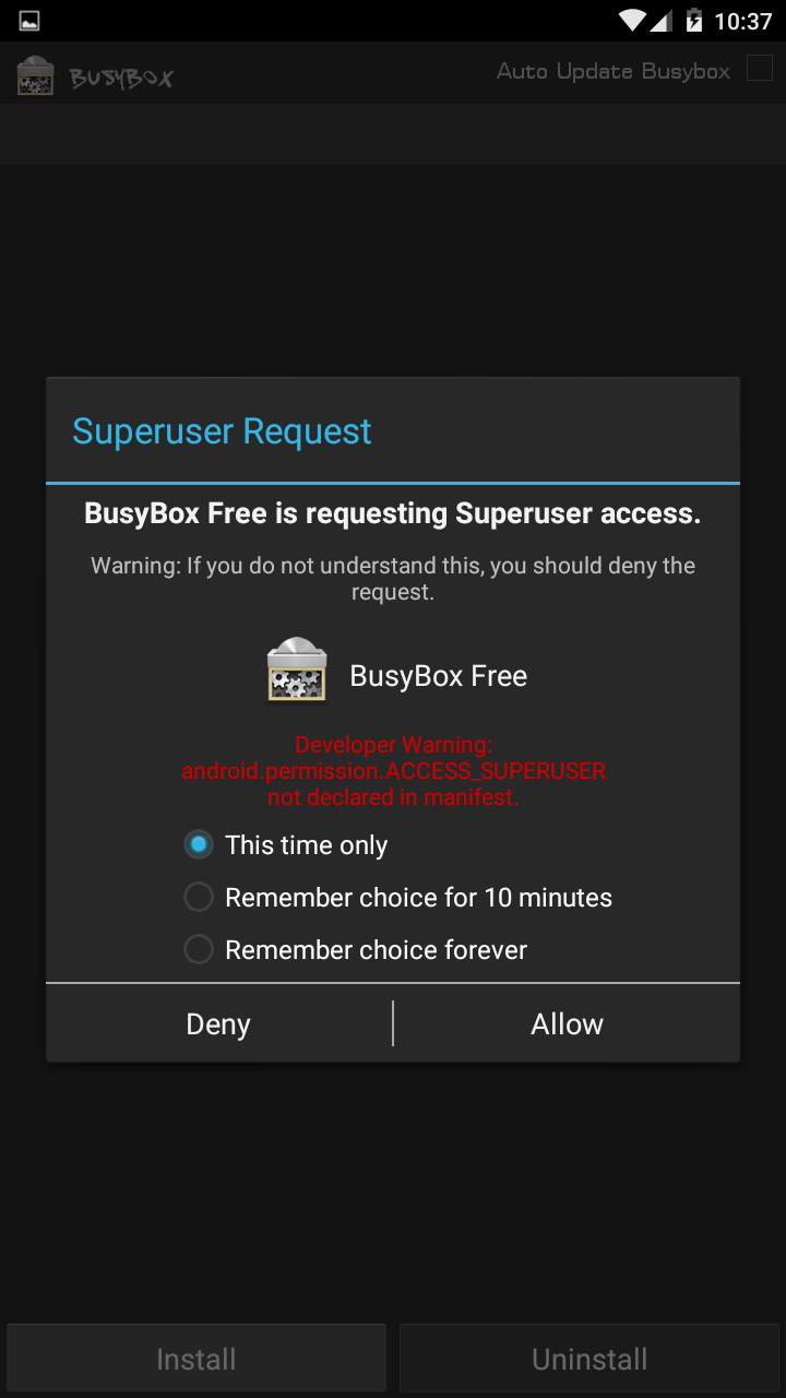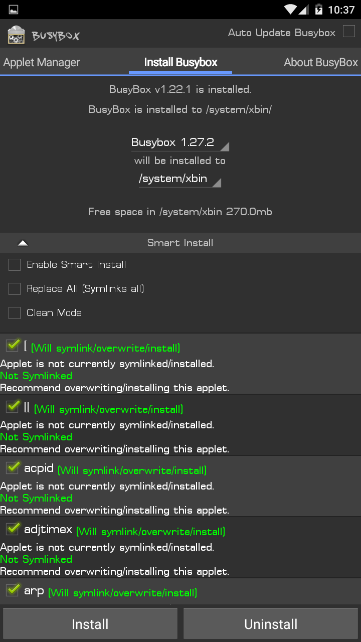 /system/xbin)或系统分区(/system/bin),以实现全局访问,或者安装到数据分区(/data/data/stericson.busybox/su)以实现用户级访问。 - 版本管理:提供了安装、更新、卸载和验证 BusyBox 安装完整性的功能。
