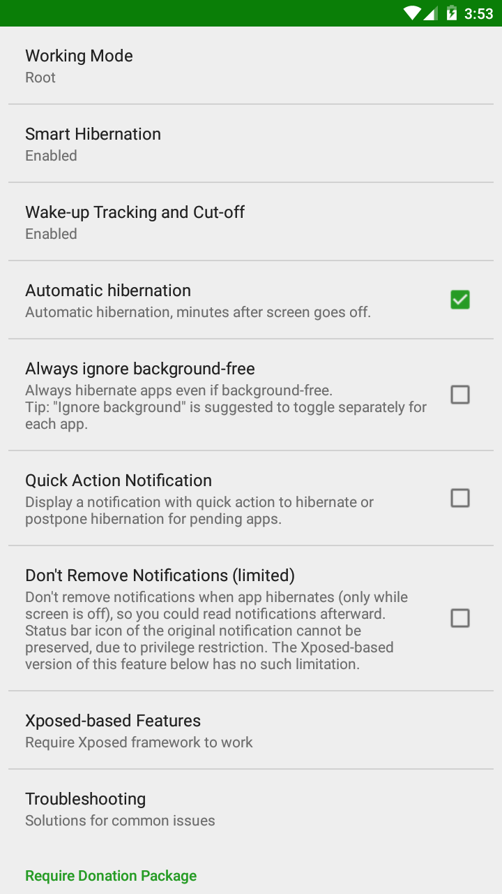 总结:Greenify 是一款非常强大且实用的 Android 优化工具,尤其适合应对中国应用环境下各种“全家桶”相互唤醒、耗电耗流量的乱象。它通过一种优雅且智能的方式延长电池续航,让设备运行更加流畅,同时最大限度地减少对正常使用应用的干扰。对于追求续航和性能的 Android 用户来说,它几乎是一款必备神器。