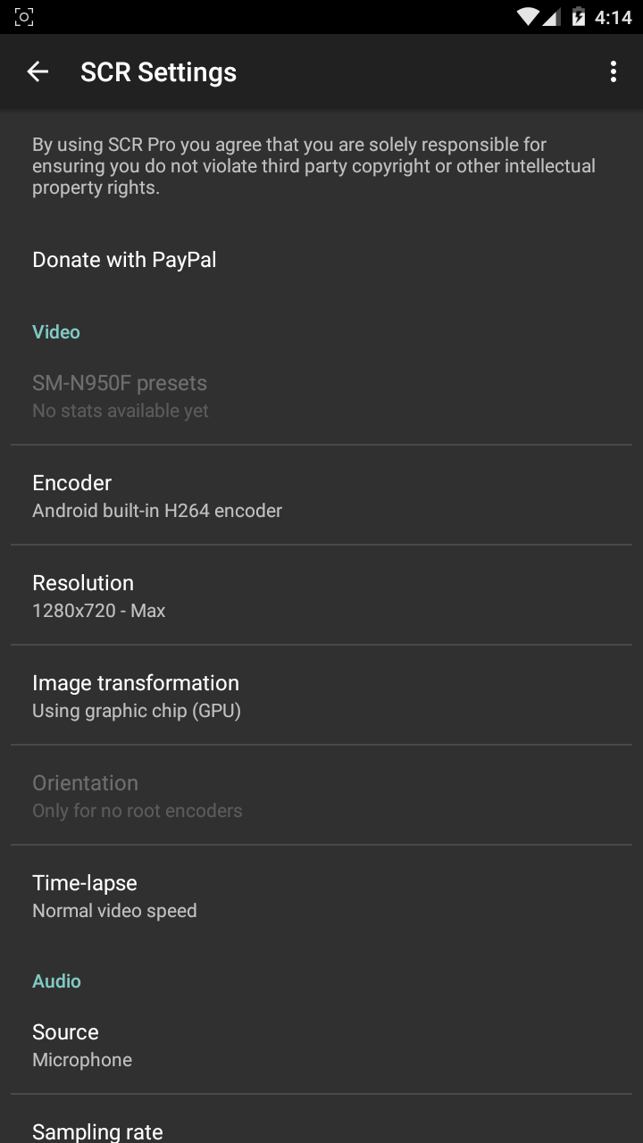 自从这个应用程序被从 Google Play 删除(因操控 SELinux 设置),我无法支持它。Lollipop 引入了一个 MediaProjection API,越来越多的屏幕录制器使用它,而不需要 root 权限。
